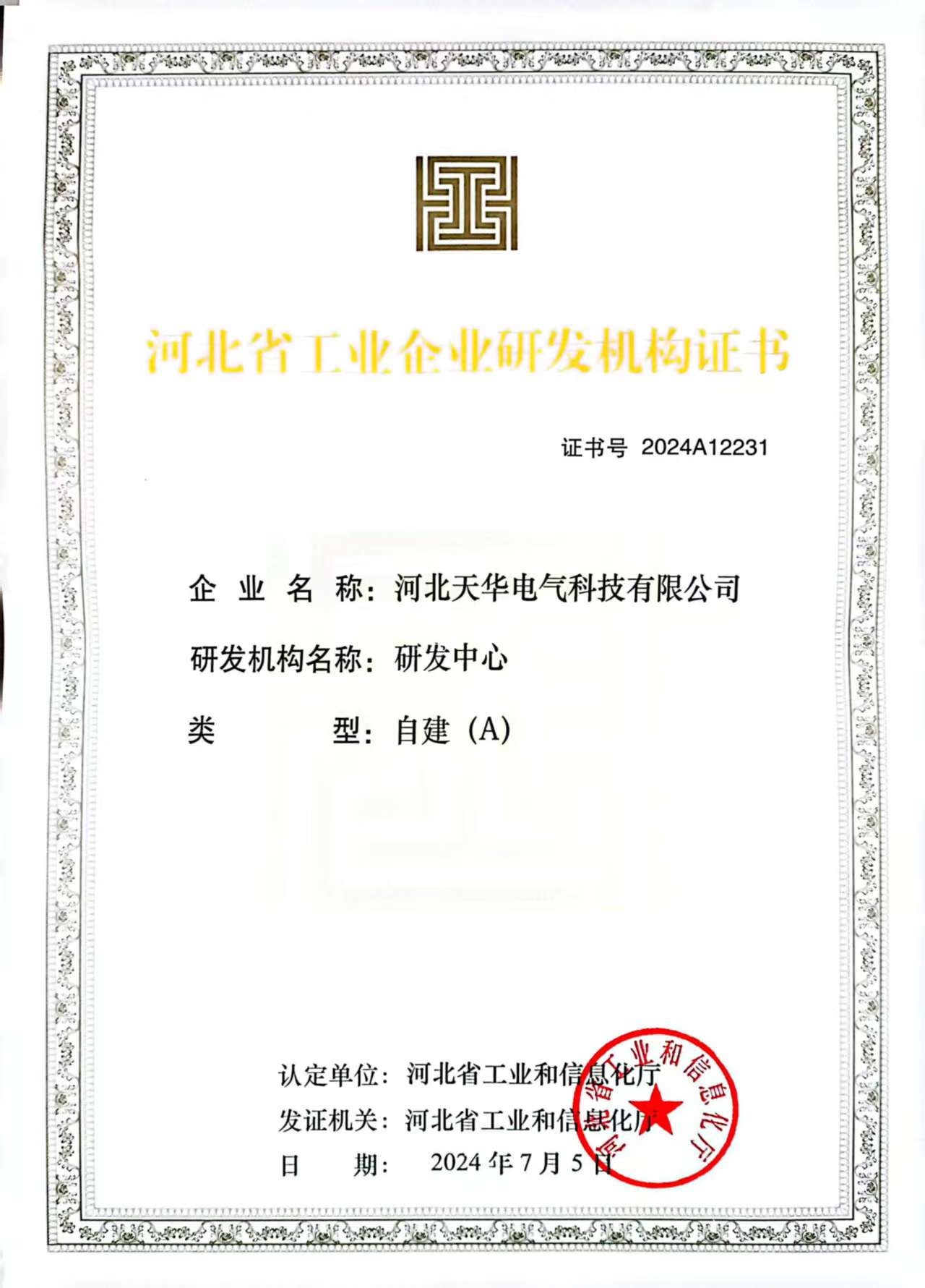 河北省工業(yè)企業(yè)研發(fā)機構證書A級