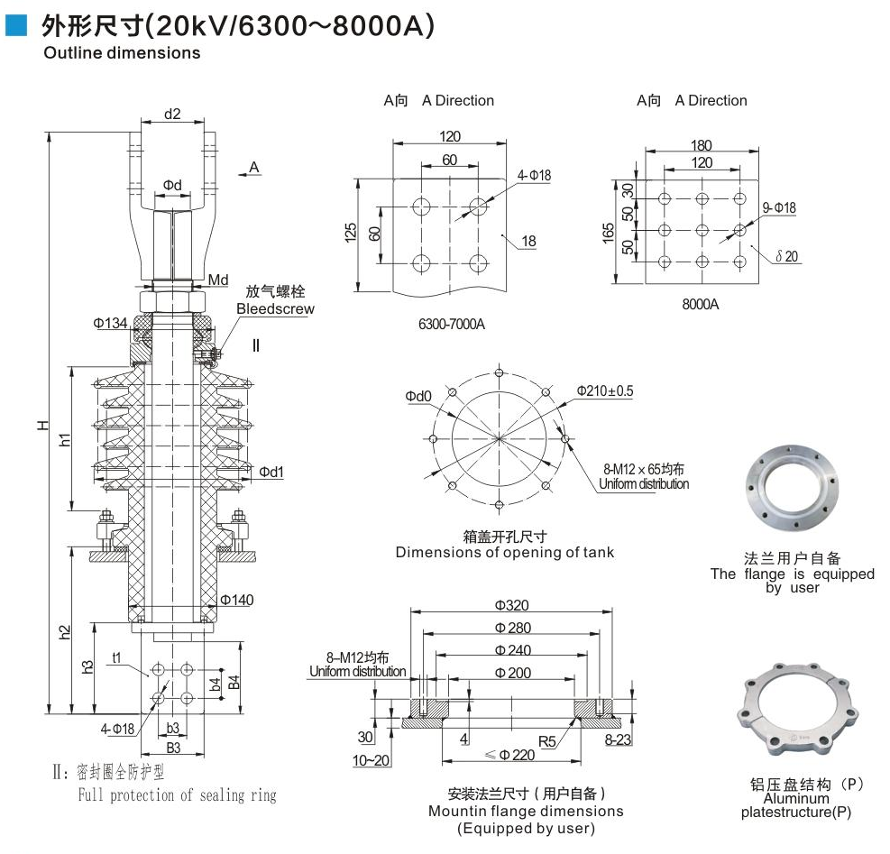 20kV/6300~8000A鏟形連接套管