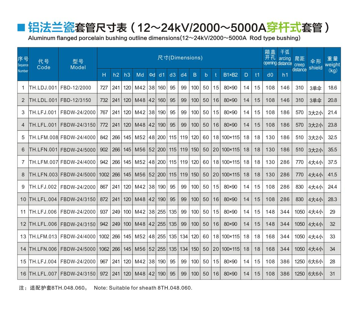 鋁法蘭瓷套管12~24kV/2000~5000A穿桿式套管