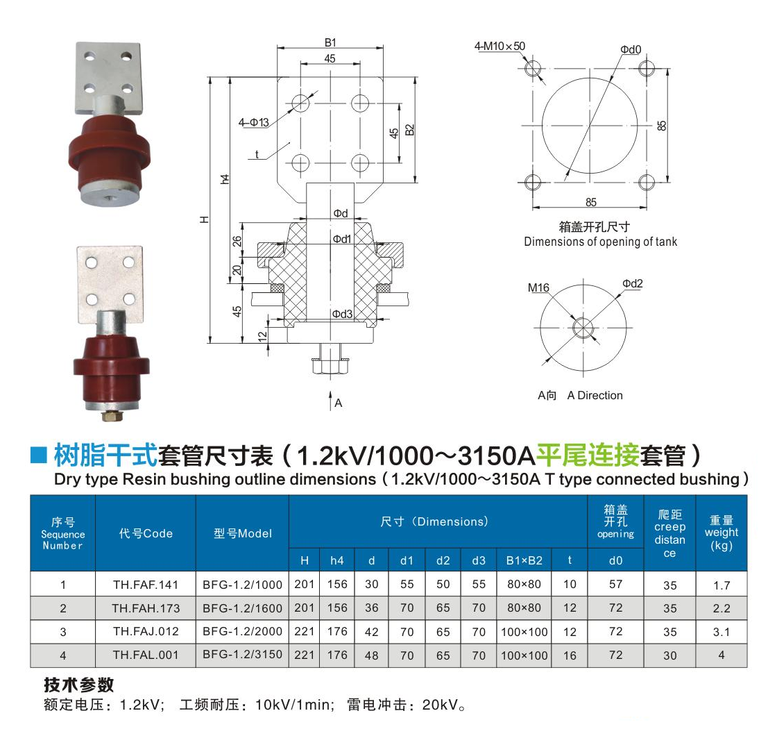 樹脂干式套管1.2kV/1000~3150A平尾連接套管