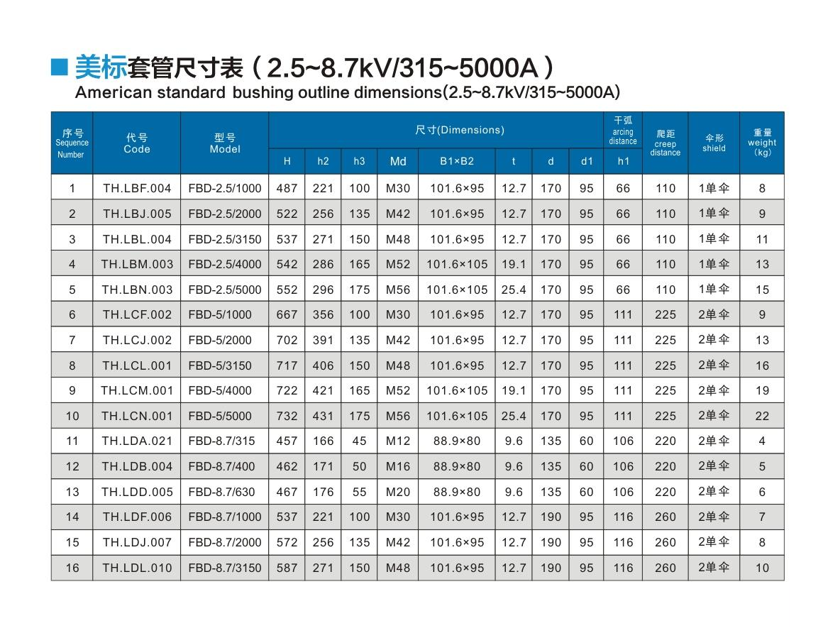 美標套管2.5~8.7kV/315~5000A