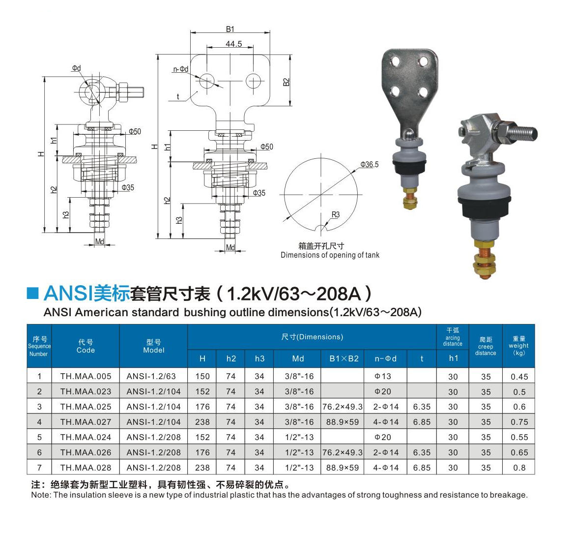ANSI美標套管1.2kV/63~208A